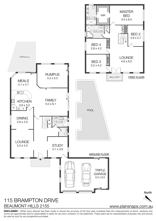 * On the main floor you'll find bright Formal Lounge and Dining Rooms, Study, Open plan Kitchen/ Family/ Meals and separate Rumpus or 5th bedroom.