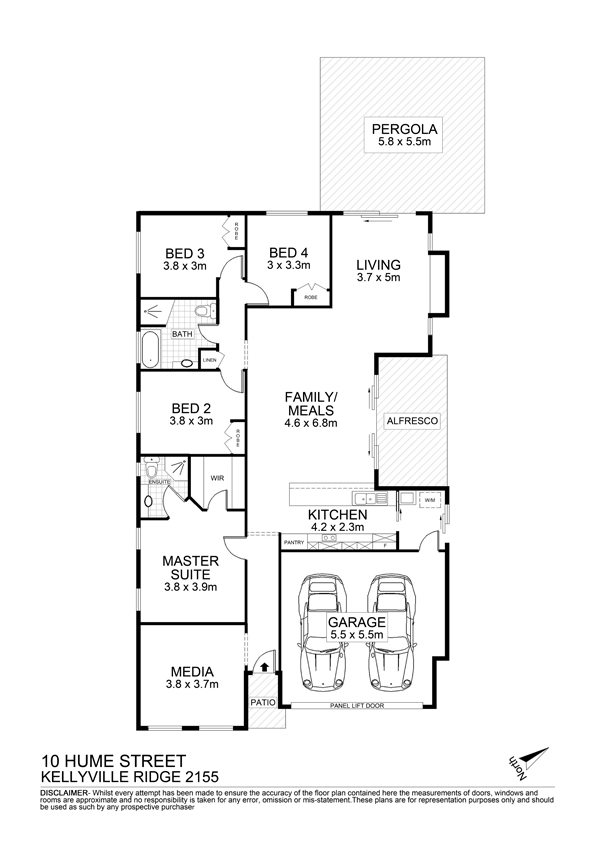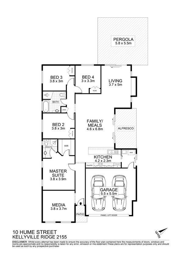 * Gable roof pergola and open grassed yard perfect for entertaining