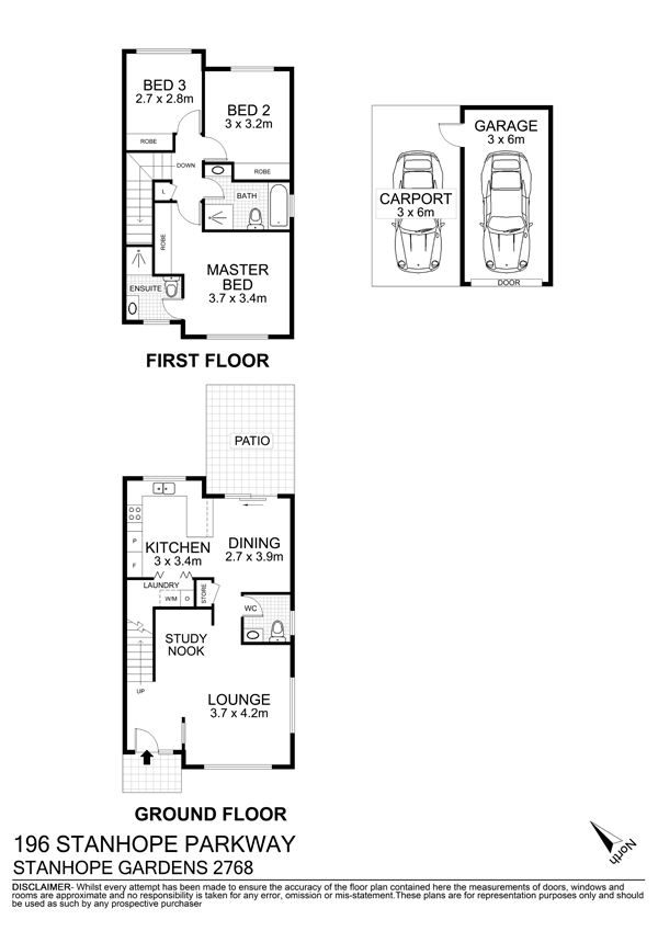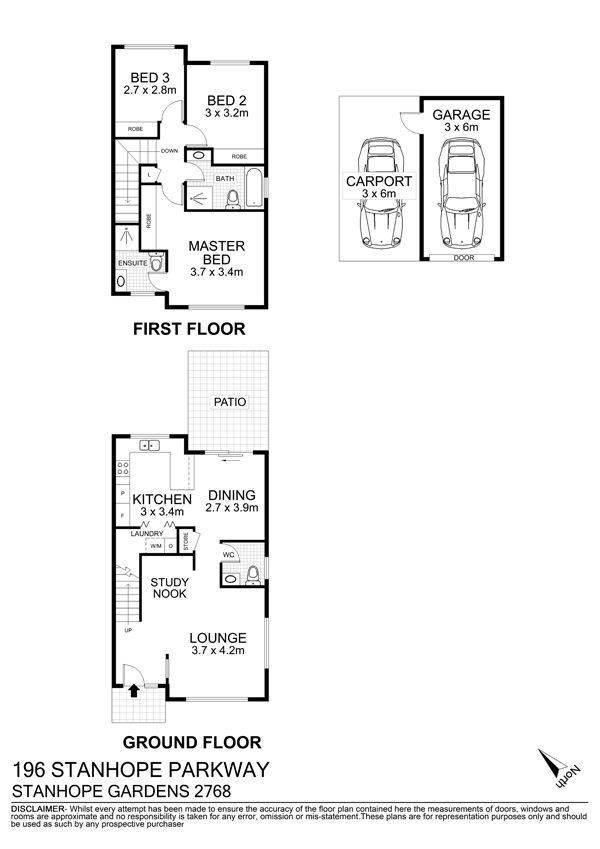 * Open plan lounge with study nook plus down stairs laundry and 3rd toilet
