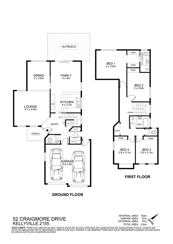 * 4 Spacious bedrooms with master featuring an en-suite and double robes