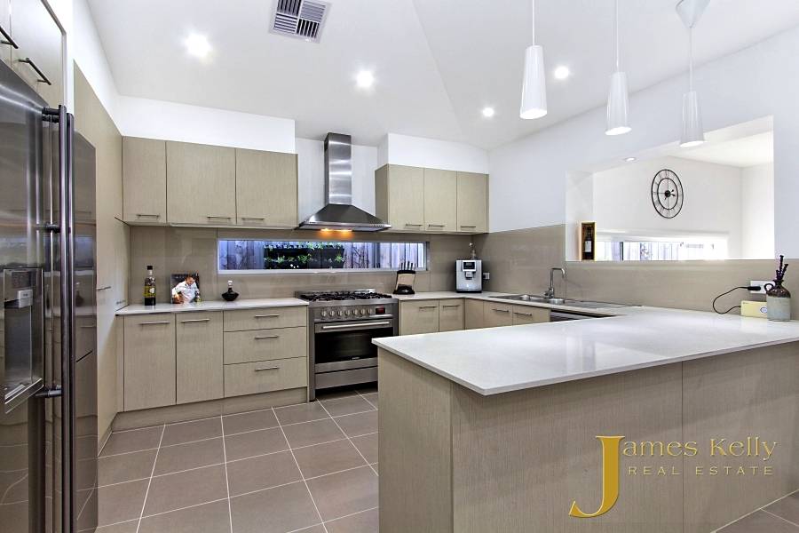 - Enormous designer gas kitchen with stone bench tops and quality stainless steel appliances