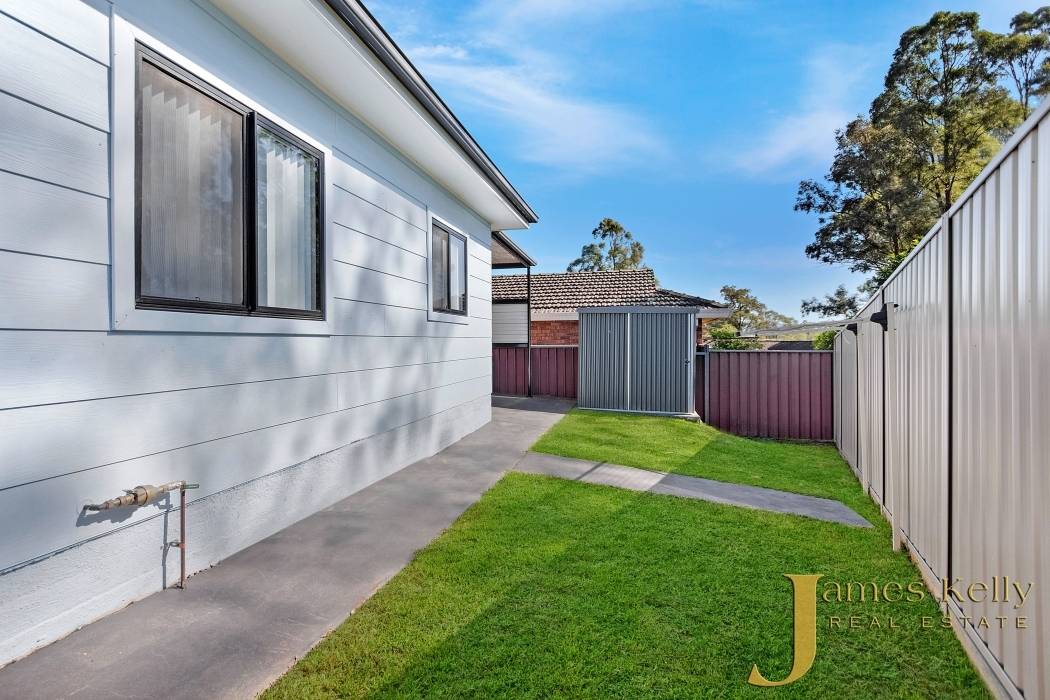 - Rear yard with side access and room for children and pet to play plus storage shed