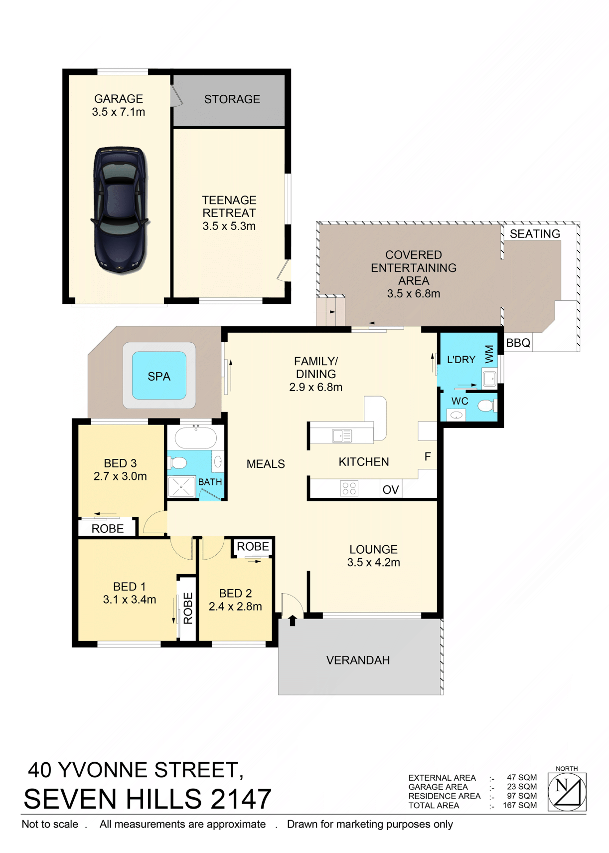 - Beautiful covered outdoor entertaining area with built in seats, bbq and spa