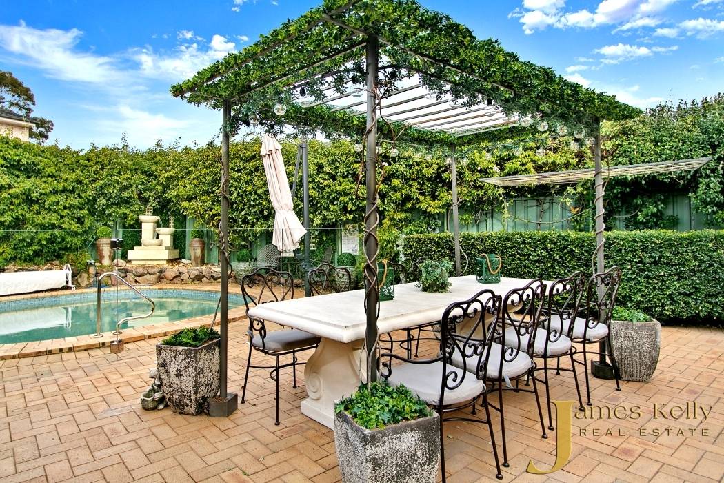* An entertainers alfresco with electronic controlled pergola and tuscany expired setting overlooking the salt water and heated in ground swimming pool with top of the line automatic robot cleaner