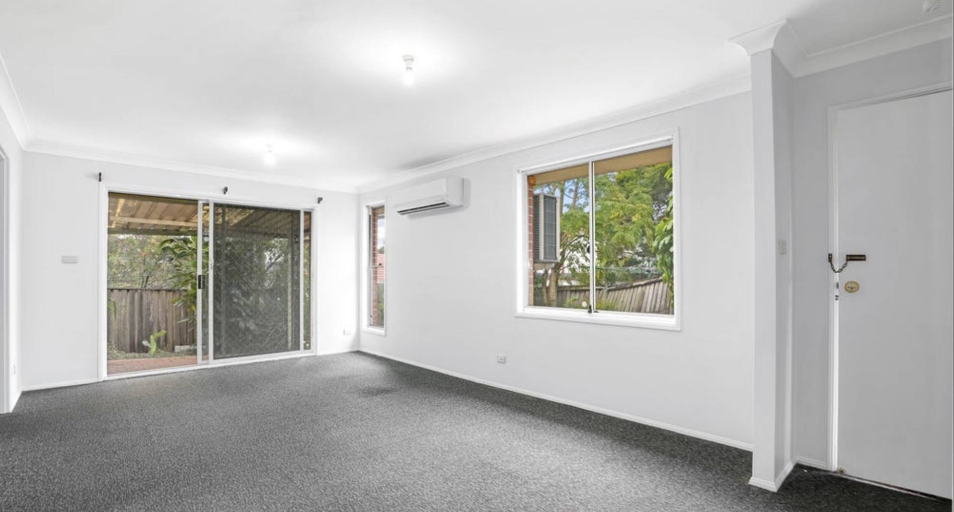 - Carpeted throughout with split system air conditioning