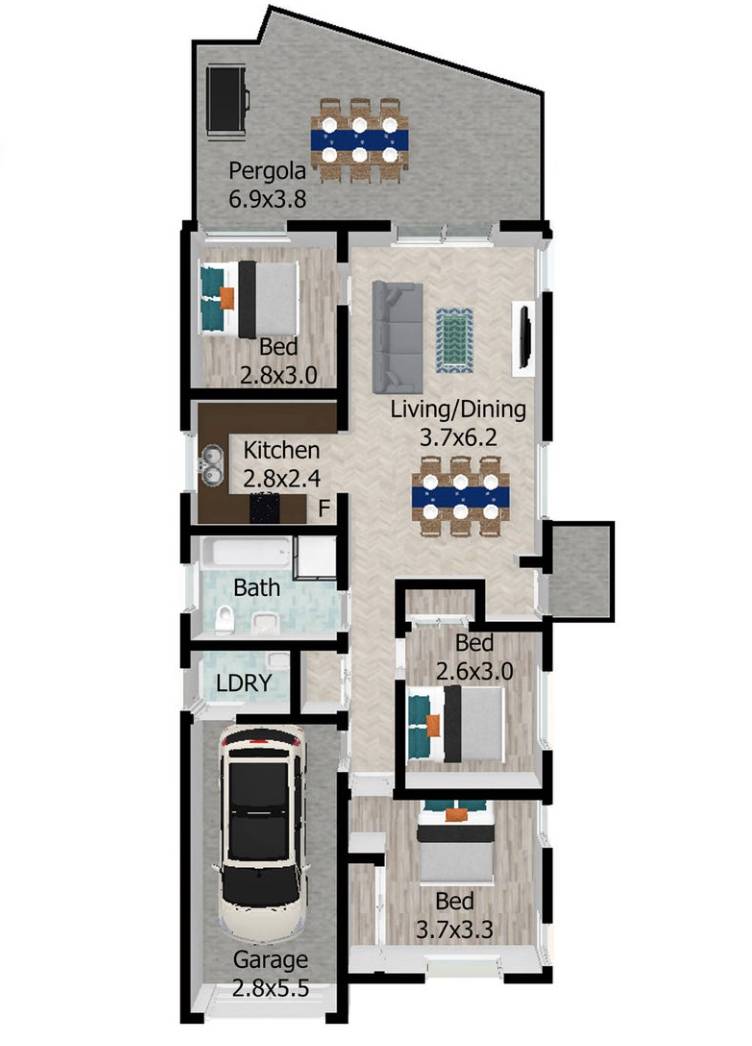 - Large covered outdoor entertaining area